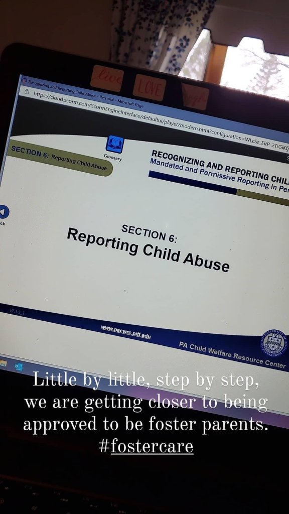 In March 2021, we begin the process to become an approved foster home. It was a long process: training, home study, wellness checks, water test, clearances, background checks, etc.